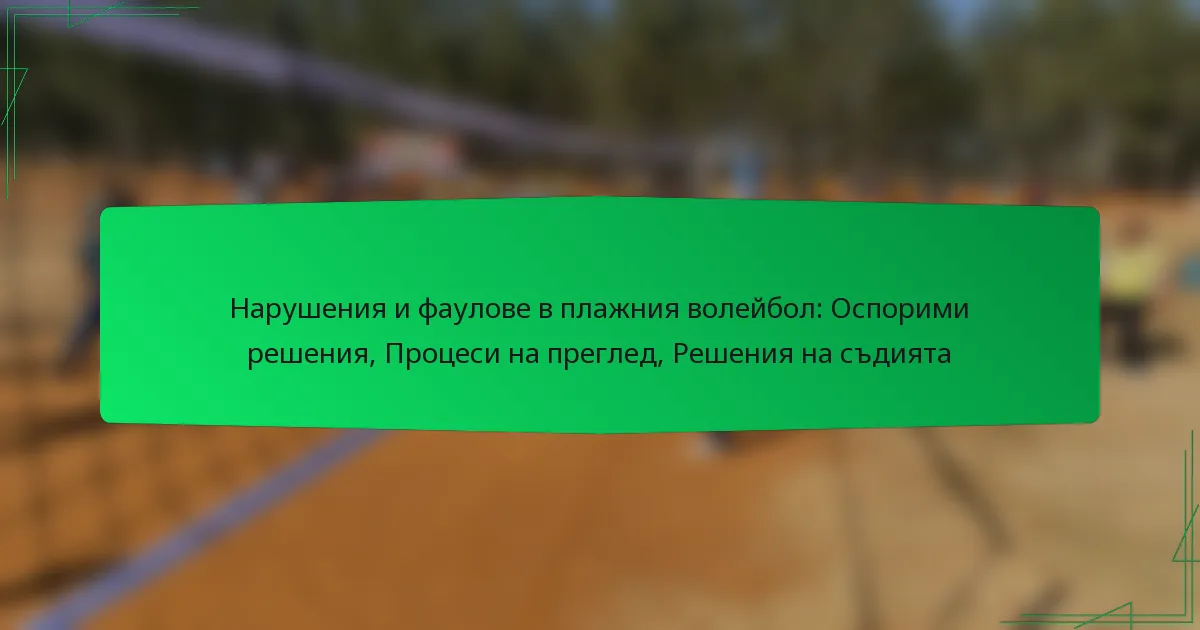 Плажният волейбол се управлява от специфични правила относно нарушения и фаули, които могат значително да повлияят на играта. Основните области на внимание включват нарушения на оборудването, стандарти за униформи и проблеми с брандирането, всяко от които може да доведе до наказания или прекъсвания по време на мачовете. Разбирането на тези регулации е от съществено значение за играчите, за да поддържат справедливост и да запазят целостта на спорта.