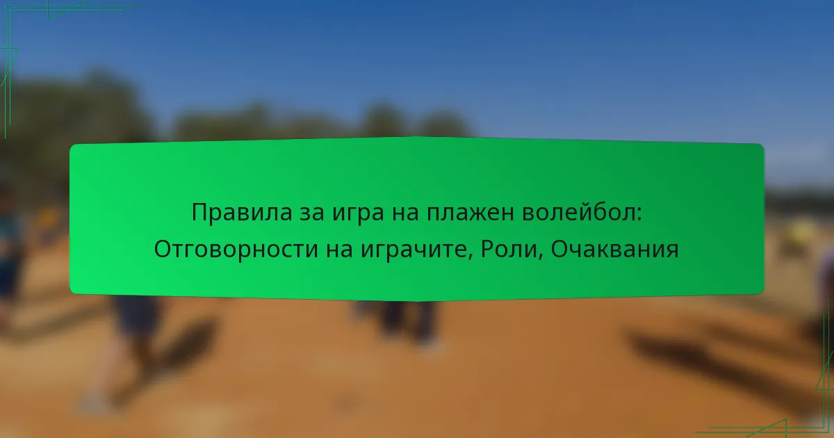 Играта на плажен волейбол се регулира от Международната федерация по волейбол (FIVB), която установява ясни насоки относно отговорностите, ролите и очакванията на играчите. Всеки играч има специфична роля, която допринася за успеха на отбора, и разбирането на тези роли е от съществено значение за ефективна стратегия и работа в екип. Освен това, от играчите се очаква да спазват стандарти за уважение и спортменство, създавайки положителна среда за всички участници.