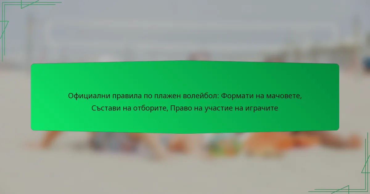 Официалните правила на плажния волейбол са установени от Френската федерация по волейбол (FIVB) и обхващат различни аспекти, като точки, позиции на играчите, поведение, оборудване и продължителност на мача. Тези правила осигуряват честна игра и последователност в състезанията по целия свят, като същевременно позволяват местни адаптации, за да отговорят на различни среди и нива на играчи.