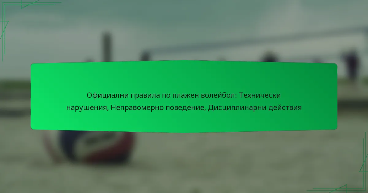 В плажния волейбол техническите нарушения и неправомерното поведение са критични аспекти, които осигуряват целостта и динамиката на играта. Техническите нарушения нарушават играта и могат да доведат до наказания, които влияят на резултата, докато неправомерното поведение подкопава духа на спорта и може да доведе до дисциплинарни действия. Тези действия варират от предупреждения до суспендиране, в зависимост от тежестта на нарушенията, подчертавайки важността на спазването на установените правила.